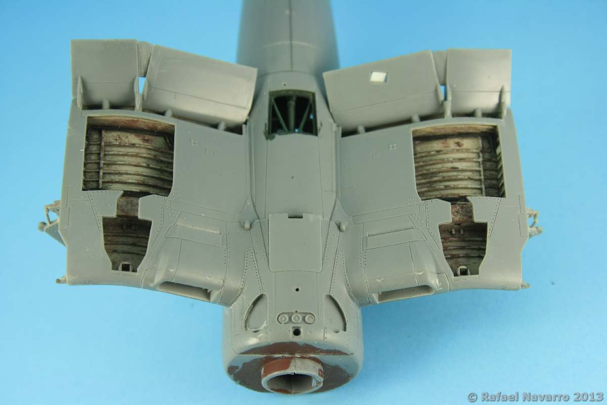 Lo curiosos es que Tamiya no preve la opción de montarla con los flaps arriba que es la posición mas común con las alas plegadas, pero bueno, lo voy a dejar así.